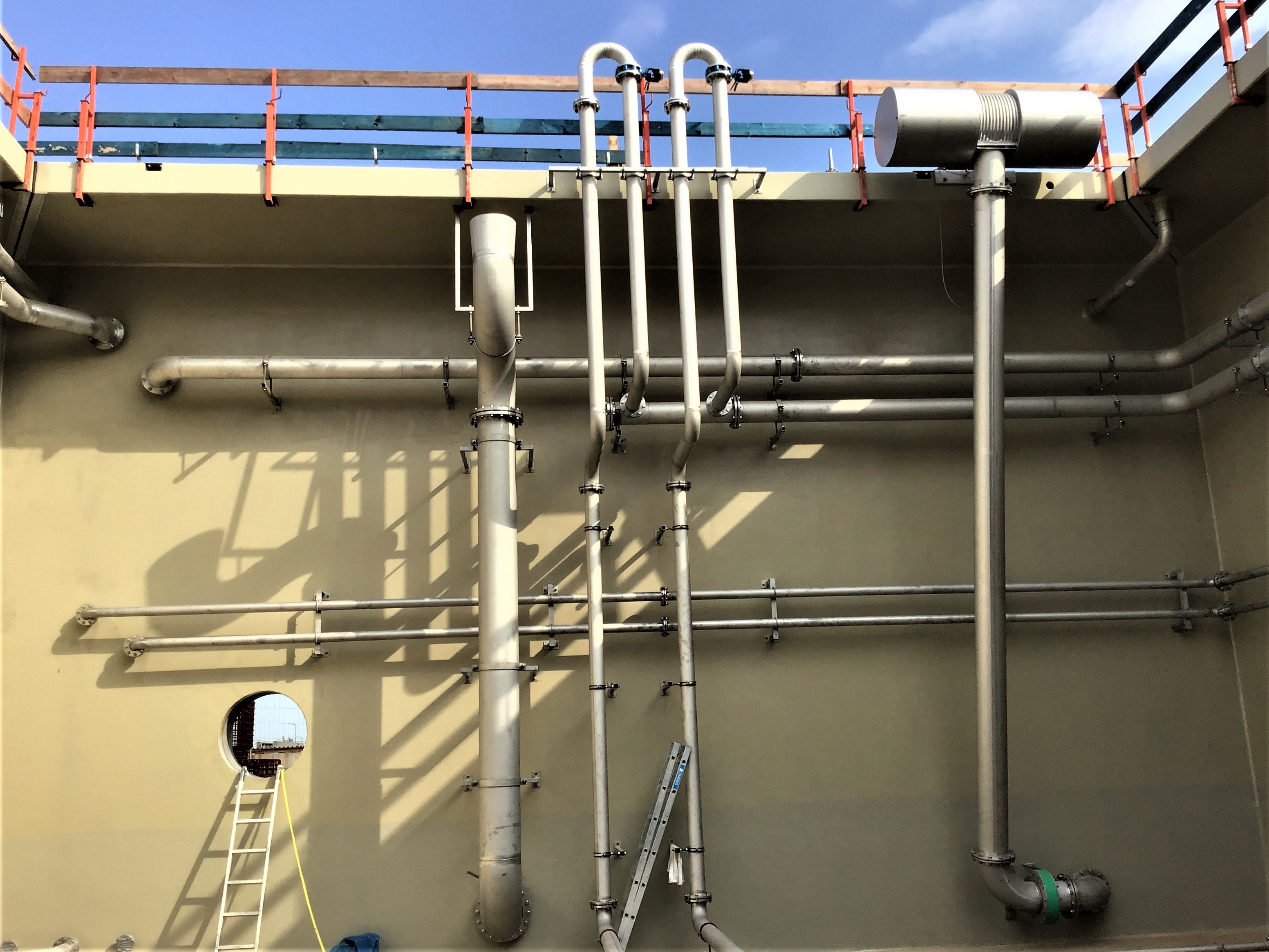 Dabei wird das Prozesswasser aus der Faulschlammentwässerung (Zentrifugen) über das Zentratpumpwerk (Bestand) in den neuen abgedeckten Prozesswasserspeicher eingeleitet und anschließend den SBR-Reaktoren zugeführt. Durch Einstellung konkreter Prozessparameter gelingt es, eine Deammonifikation mit suspendierter Biomasse erfolgreich zu betreiben. Der TS-Gehalt liegt im Regelbetrieb zwischen 1 - 8 g/l.